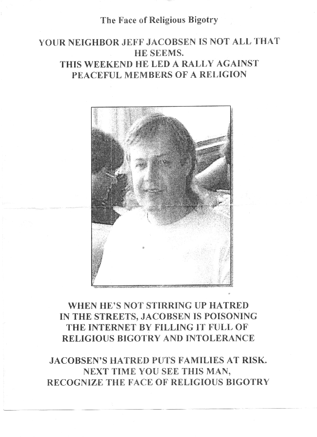 Anti-critic flyers allegedly handed out by